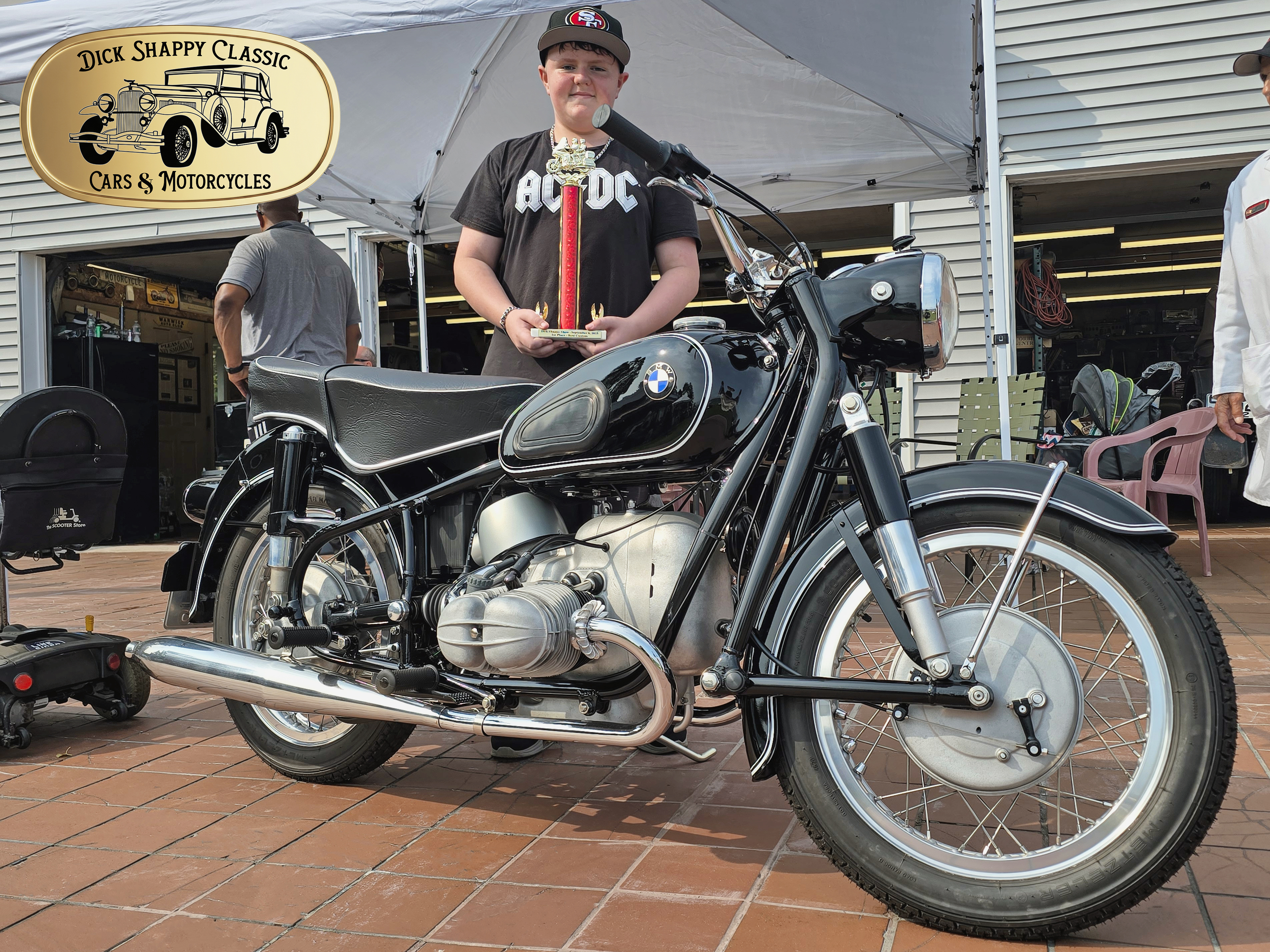 | Ryker Shappy with his 1961 BMW R69S motorcycle, which won Best European Motorcycle. |