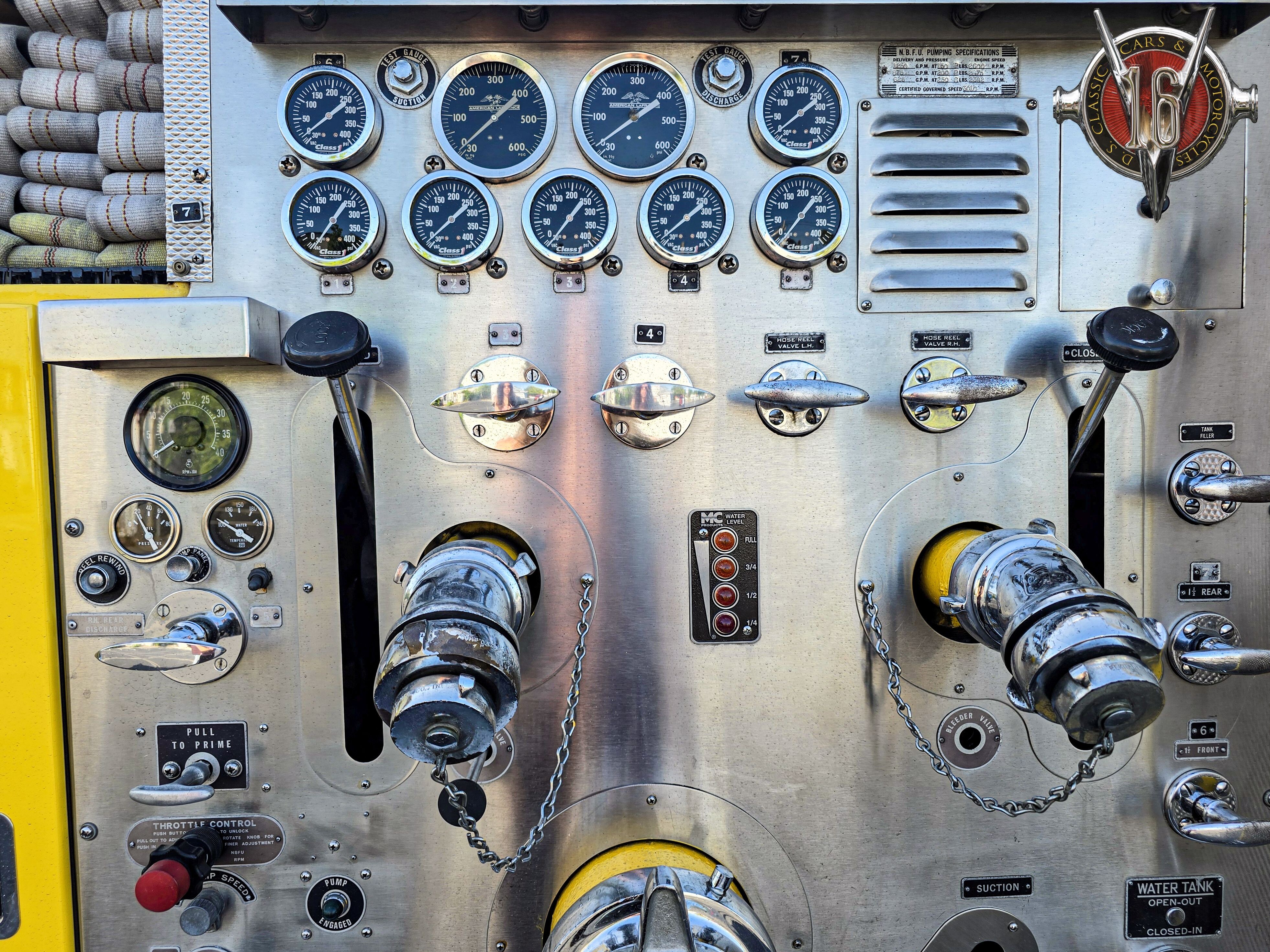 HOSES: One 6” steamer connection each side (NST), one 2.5” intake on driver’s side, two 2.5”