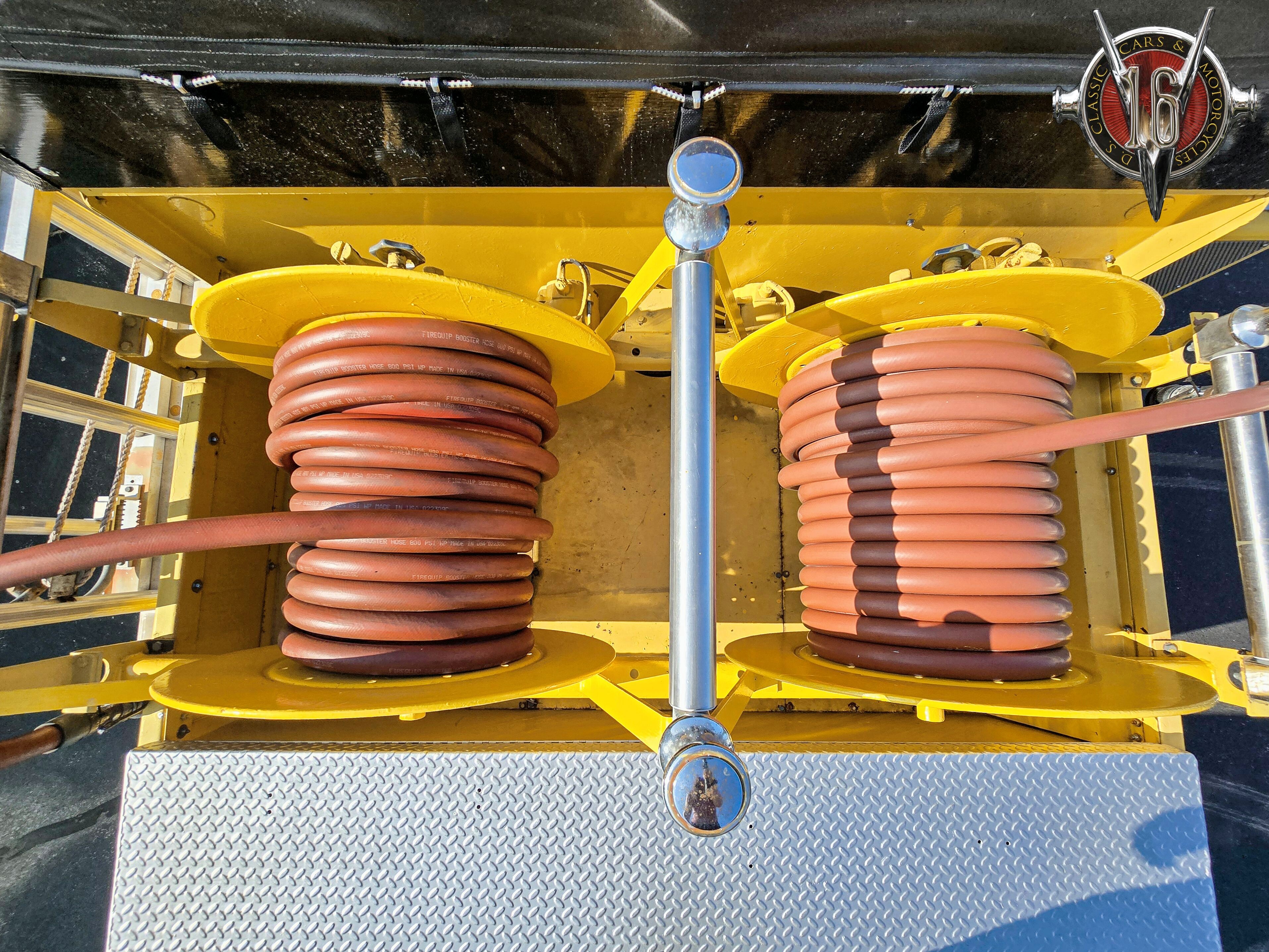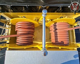 BOOSTER REELS: two with electric rewind, each with 100 FT. of new 1” hose